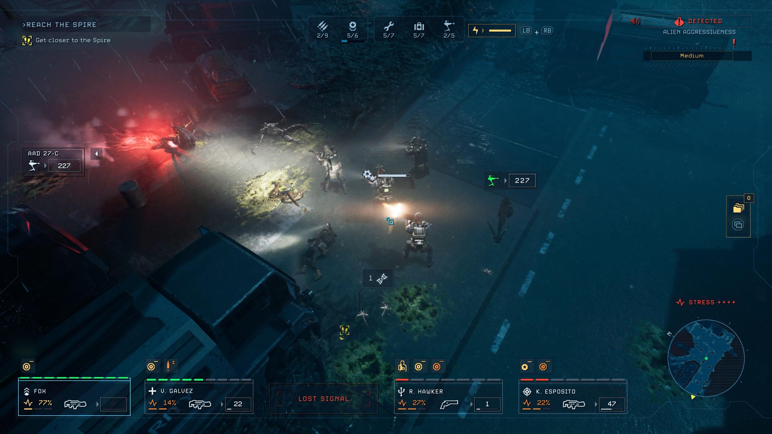 Once you have a firm understanding of the action the game becomes that much more enjoyable as you move from building to building, clearing objectives, looting crates, and gaining experience for your squad. The goal is obviously to beat the mission, but it’s also to extract with more resources than you came with, and a full squad that’s now stronger and more versatile than before. Much like XCOM or Darkest Dungeon when you lose a soldier that’s it, they’re gone and while there are some fun mechanics like Xeno’s abducting your marines that give you the opportunity to save them, it’s added pressure to maintain a full squad without ever losing a single soldier. Depending on the difficulty you choose at the beginning of the game, your experience is going to be vastly different, but for the record I chose to play and review the game on the ‘hard’ difficulty which I always find to be a good barometer for a game as a whole.